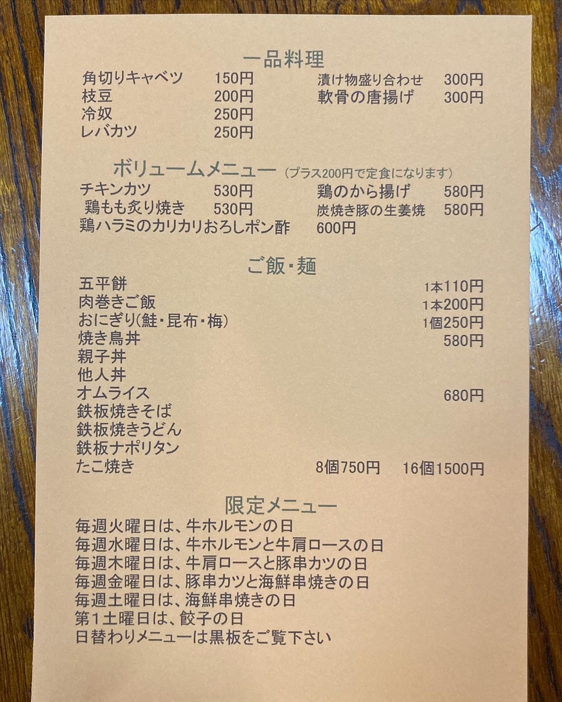 女性店主がひとりでまったりと経営している居酒屋すろぉ。